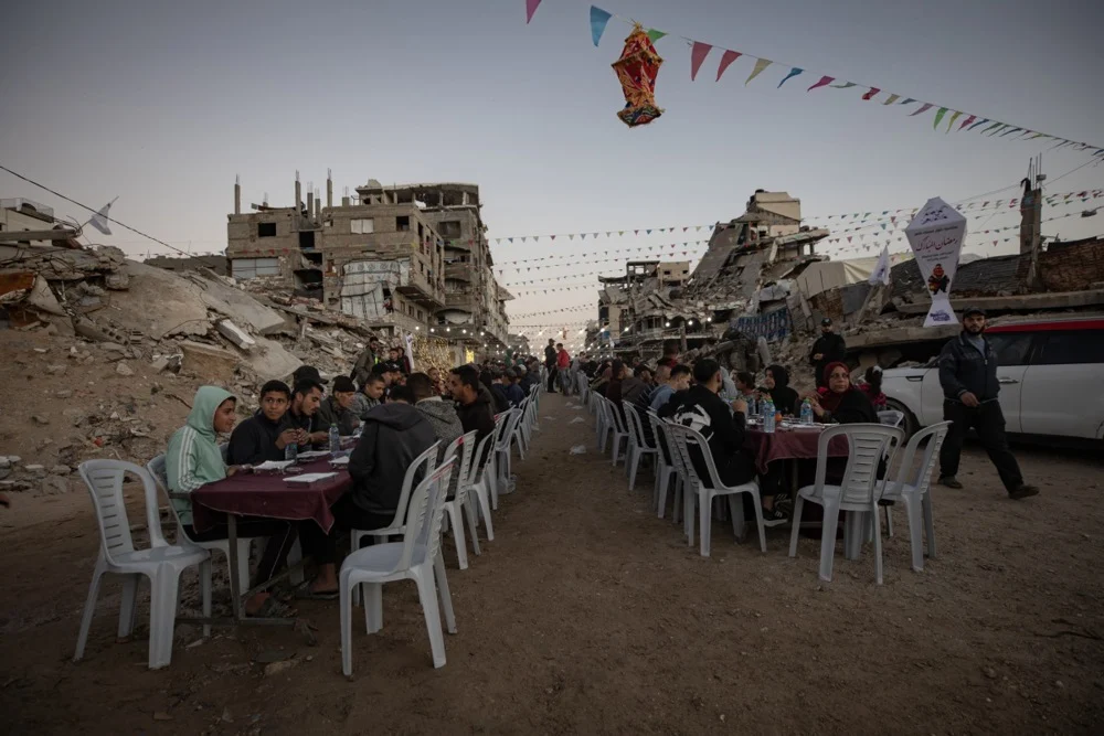 تحوّل شهر رمضان المبارك في قطاع غزة من موسم للاحتفاء والبهجة إلى لوحة من الإفطار الجماعي الحزين والمقاوم في آنٍ واحد. رصدت عدسات “وكالة الأنباء الأوروبية” واقعاً يفيض بالشجن، حيث افترش الغزيون الركام وأقاموا موائدهم وسط خيام متلاصقة تفتقر لأدنى مقومات الحياة، لكنها تعج بالأمل.