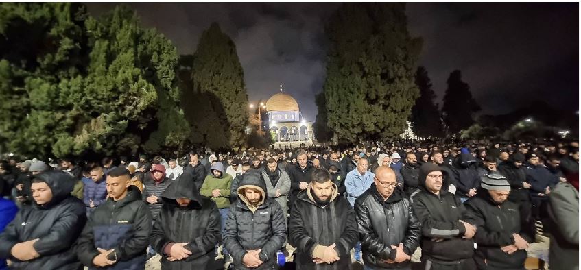 أدى نحو 40 ألف مصلٍ، مساء اليوم الثلاثاء، صلاتي العشاء والتراويح في رحاب المسجد الأقصى المبارك بالقدس المحتلة، في أجواء إيمانية وروحانية، رغم القيود التي تفرضها سلطات الاحتلال الإسرائيلي على الوصول إلى المسجد. وأفادت دائرة الأوقاف الإسلامية في القدس، في بيان أوردته وكالة الأنباء الفلسطينية