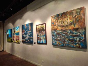 بينما ركزت الفنانة أميرة العطار على التراث المعماري، من المشربيات إلى الترسانة البحرية، في حين عبّرت رشا سليمان عن روح المدينة عبر رموز كالمساجد والمراكب والطاحونة التراثية.