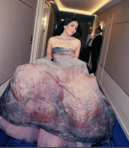 ولم تكن هذه المرة الأولى التي تختار فيها منى تصاميم زهير مراد؛ فقد ارتدت خلال مهرجان كان السينمائي 2023 فستانًا مستوحًى من أجواء مسلسلها الشهير “تحت الوصاية”، تميز بزخارف تحاكي ألوان البحر وأشرعة الصيد، في إشارة فنية راقية إلى روح العمل الدرامي.