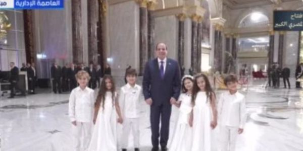 أطفال «وطن السلام» يلتقطون صورة تذكارية مع الرئيس السيسي في احتفالية الأوبرا بالعاصمة الإدارية
