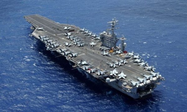 وعلى متن الحاملة العملاقة، توجد عشرات الطائرات المقاتلة وطائرات الاستطلاع، بالإضافة إلى سفن حربية أخرى تابعة للبحرية الأمريكية.