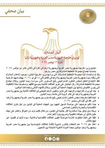 عقد وزيرا خارجية مصر وتركيا اجتماعًا مشتركًا في إطار آلية مجموعة التخطيط المشتركة، التي أُنشئت بموجب إعلان القاهرة في فبراير 2024، بهدف تمهيد الطريق لاجتماع مجلس التعاون الاستراتيجي رفيع المستوى بين البلدين.