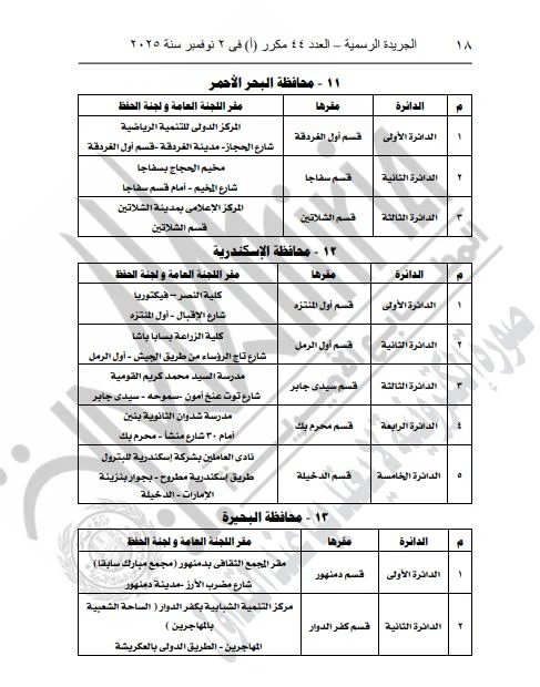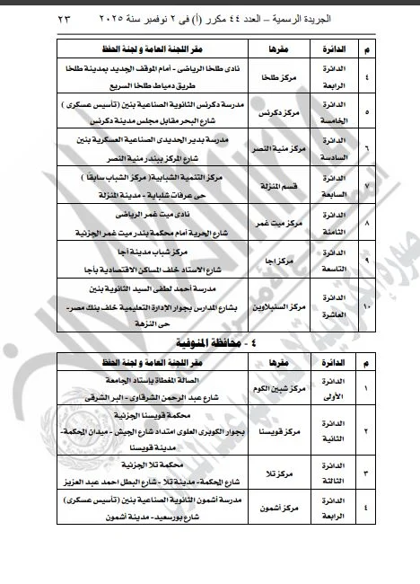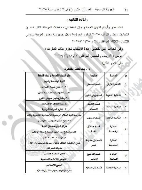 ونُشر القرار في الجريدة الرسمية، متضمنا تفاصيل تحديد المقار، والأرقام الخاصة باللجان العامة، ولجان الحفظ على مستوى الجمهورية، وذلك في المرحلتين الأولى والثانية من الانتخابات البرلمانية.