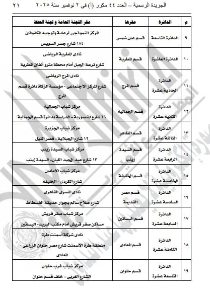 أصدرت الهيئة الوطنية للانتخابات برئاسة القاضي حازم بدوي القرار رقم 59 لسنة 2025 بشأن تحديد مقار اللجان العامة ولجان الحفظ وأرقامها في انتخابات مجلس النواب.
