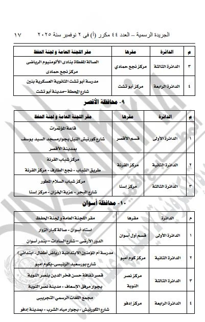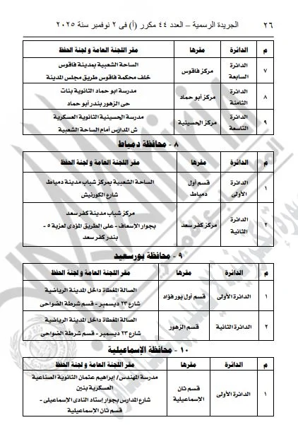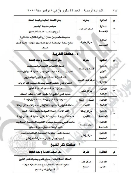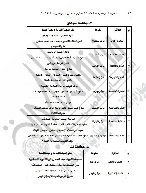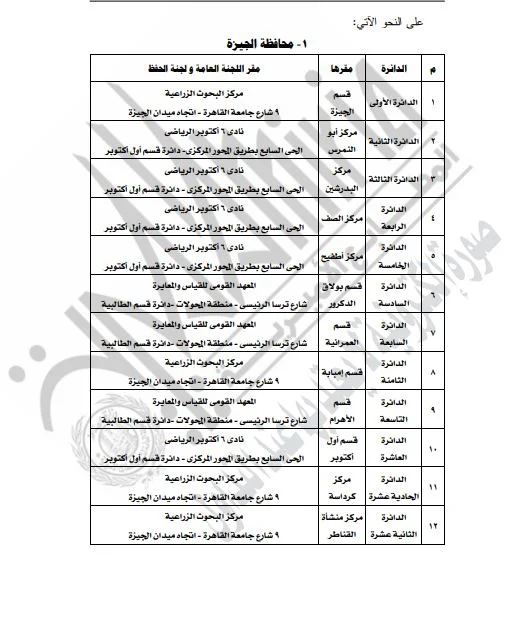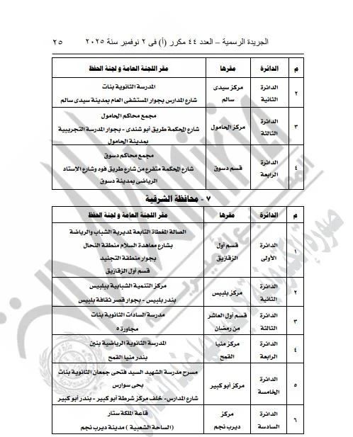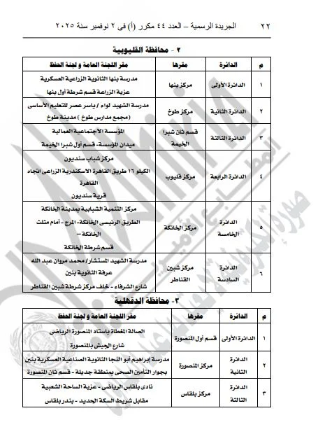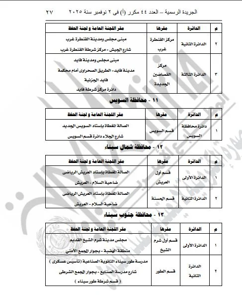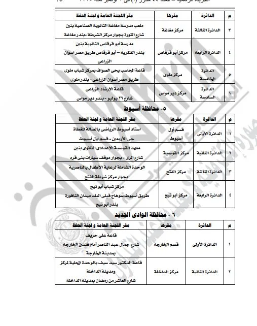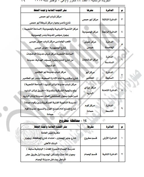 ونُشر القرار في الجريدة الرسمية، متضمنا تفاصيل تحديد المقار، والأرقام الخاصة باللجان العامة، ولجان الحفظ على مستوى الجمهورية، وذلك في المرحلتين الأولى والثانية من الانتخابات البرلمانية.