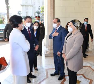 انتصار السيسي ترحب بقرينة رئيس كوريا الجنوبية: “أهلًا بكم في مصر”