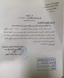 تأسيس حزب الجبهة الوطنية رسميا بعد موافقة لجنة الأحزاب السياسية