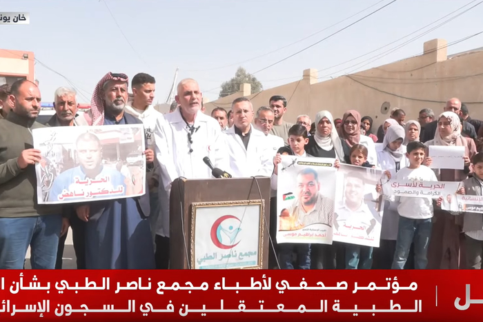 في وقفة تضامنية حملت شعار «عامان على تغييب الحقيقة… أطباء مجمع ناصر الطبي خلف القضبان»، أطلق الدكتور عاطف الحوت، مدير المجمع في خان يونس، نداء استغاثة دولياً عاجلاً للضغط على الاحتلال الإسرائيلي للإفراج عن الكوادر الطبية المعتقلة، كاشفاً عن تفاصيل مروعة رافقت اجتياح المستشفى والتنكيل بموظفيه.