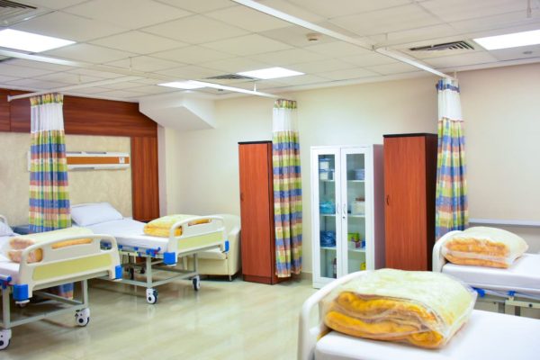 بالإضافة للخدمات بالقسم الداخلي والعناية المركزة، فيما تبلغ الطاقة الاستيعابية للمستشفى 67 سرير داخلي ،2 أجنحه فندقية، 21 سرير عناية، 43 ماكينة غسيل كُلوي، فضلًا عن 6 غرف عمليات، وغرفة جراحة مناظير جهاز هضمي، بالإضافة إلى 22 سرير طوارئ.