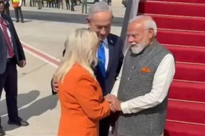 وثقت الكاميرات لقطة وصفت بـ “الأكثر إحراجاً” في الزيارة؛ فبعد العناق الحار بين نتنياهو ومودي، انتقل الأخير لمصافحة سارة نتنياهو، لكنه استمر في الإمساك بيدها لفترة طويلة بشكل غير معتاد.