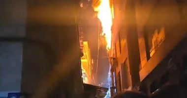 مصرع 3 أشخاص وإصابة 10 آخرين في حريق ضخم بسوق الخواجات بالمنصورة