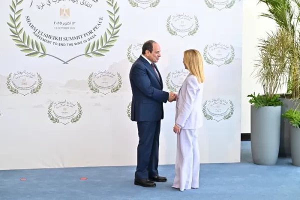 ميلوني تؤكد للسيسي التزام إيطاليا بإعادة إعمار غزة ودعم حل الدولتين خلال قمة شرم الشيخ للسلام