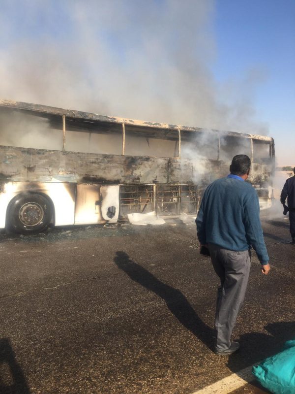 أنقذت العناية الإلهية 46 شخصًا، بينهم 6 أطفال، من الموت المحقق بعد نشوب حريق هائل في أتوبيس كان يقلهم على الطريق الصحراوي الغربي بمحافظة الأقصر.