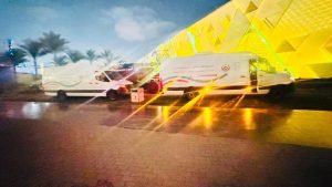 خارج المتحف ومحيطه: 65 سيارة إسعاف موزعة على المحاور والطرق المؤدية، مع رفع الاستعداد القصوى في فرع هيئة الإسعاف وتجهيز سيارات طبية متنقلة للتعامل مع الحالات الحرجة.