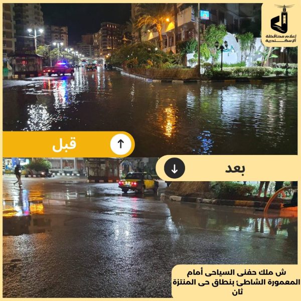 وأكدت الأجهزة التنفيذية تصريف تجمعات المياه بشكل سريع لتسيير الحركة المرورية، مع استمرار المتابعة الميدانية للتعامل مع أي مستجدات.