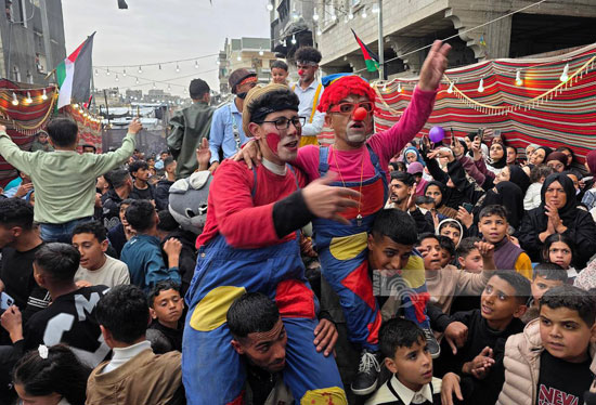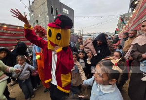 ونقلت وكالة الأنباء الفلسطينية “وفا” تقريرًا رصدت فيه انتشارًا لافتًا للمهرجين وسط أطفال غزة خلال احتفالات عيد الفطر 2026 داخل المخيمات المختلفة، في محاولة لنشر البهجة بين أطفال حُرموا طويلًا من أجواء العيد وطقوسه الطبيعية.
