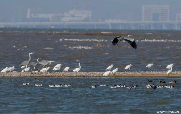 وتشير التقارير إلى تزايد أعداد بعض الأنواع النادرة المهددة بالانقراض مثل طيور منقار الملعقة ذات الوجه الأسود وطيور الرمل ذات المنقار الملعقي، وكلاهما يخضعان للحماية الوطنية من الدرجة الأولى في الصين.