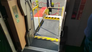 كل باب مزود بـ سُلّم هيدروليكي كهربائي يُسهّل نقل الراكب من الرصيف إلى داخل القطار دون أي مجهود.