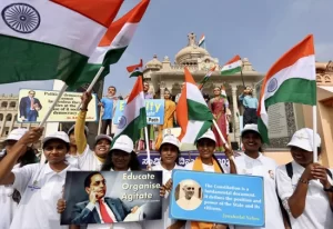 ويُصادف يوم 26 نوفمبر هذا الحدث التاريخي، الذي شهد في السابق قبل عام 2015 الاحتفال به كاليوم الوطني للقانون تكريمًا لـ”باباساهيب بهيمراو أمبيدكار”، رئيس لجنة صياغة الدستور وأول وزير للعدل في الهند المستقلة.