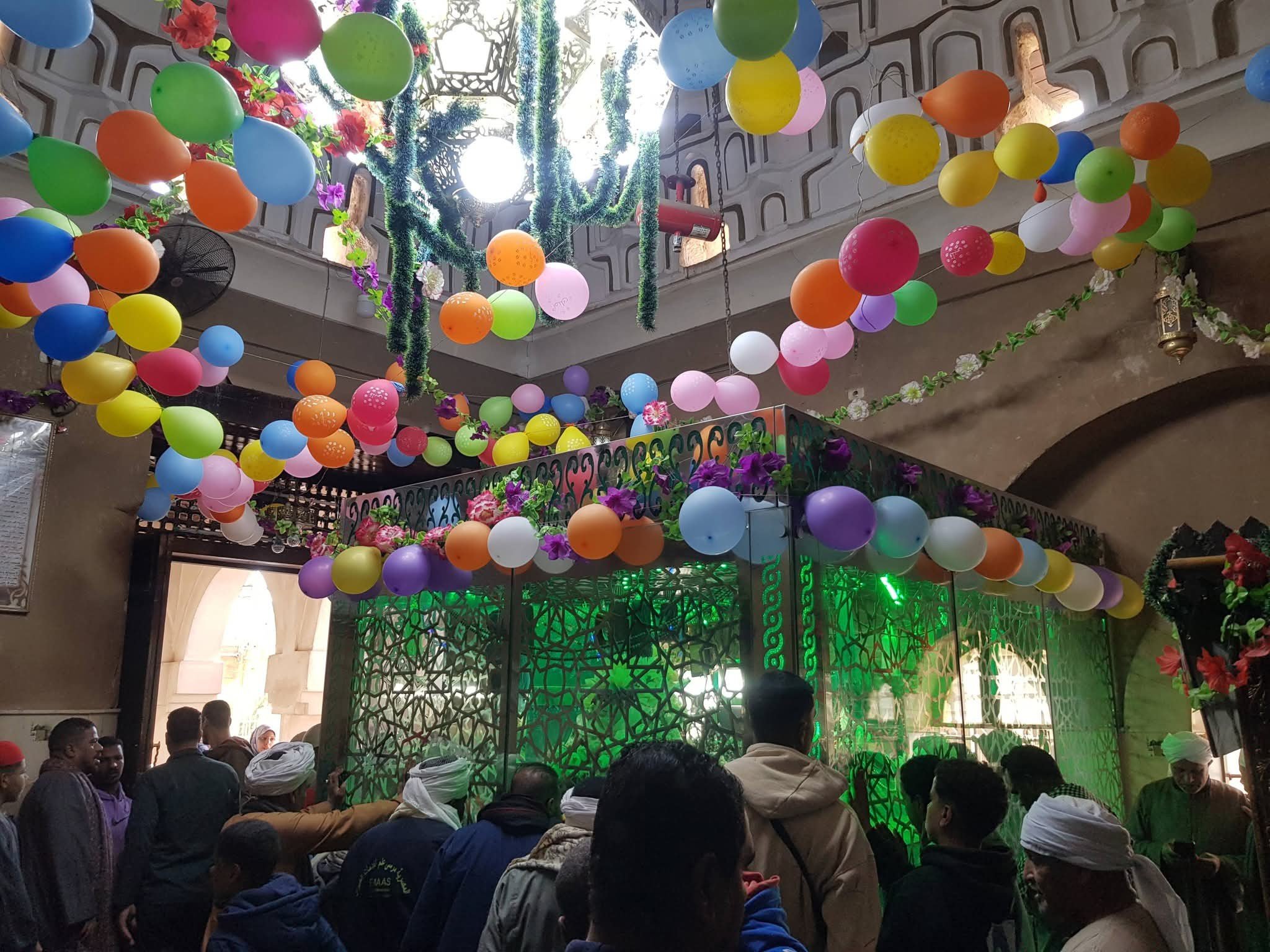 بلالين وزينة وبهجة داخل مقام سيدى أبوالحجاج الأقصرى