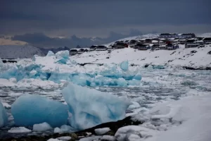 وفي أقصى الشمال، وتحديداً في مدينة “نوك” القطبية عاصمة جرينلاند، كانت الصور أكثر دهشة؛ حيث رصدت الكاميرا قطعاً ضخمة من الجليد تصطف أمام المنازل الملونة، في مشهد يبرز قسوة وجمال الحياة في الدائرة القطبية.