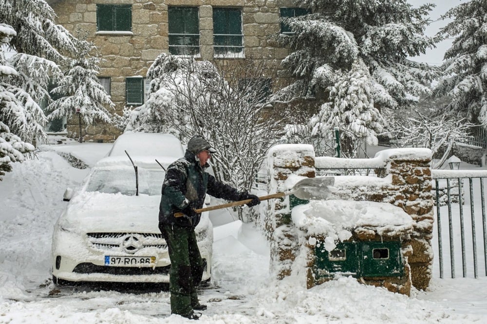 ثلوج كثيفة تجتاح شمال ووسط البرتغال وتعطل الحركة المرورية ..صور
