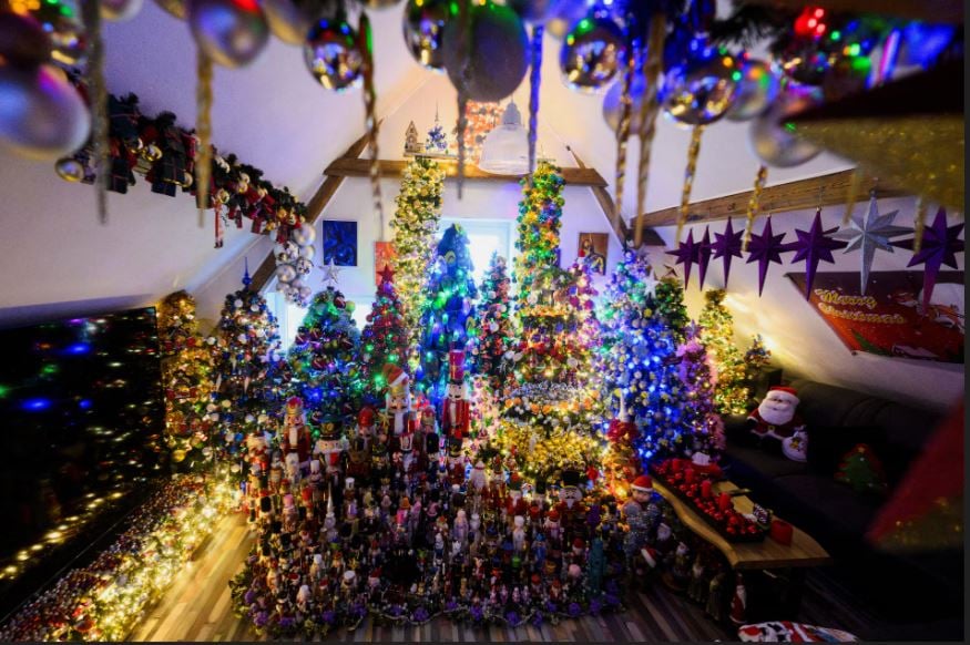 نجح زوجان ألمانيان في تحطيم الرقم القياسي العالمي لأكبر عدد من أشجار عيد الميلاد المزينة في منزل واحد، حيث وصل عدد الأشجار إلى 621 شجرة في مساحة منزل لا تتجاوز 180 مترًا مربعًا.