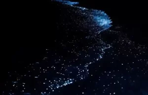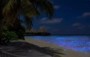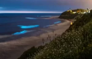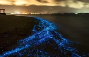 في مشهد يبدو وكأنه خارج من عالم الخيال، تتحول شواطئ الهند مع حلول الليل إلى لوحات مضيئة تُبهر العيون وتسرق الأنفاس. مياه تتوهج باللون الأزرق النيون تحت ضوء القمر، فتبدو كأنها مرصعة بالنجوم، مشهد طبيعي نادر يجذب آلاف السياح من أنحاء العالم إلى تلك البلاد الساحرة.