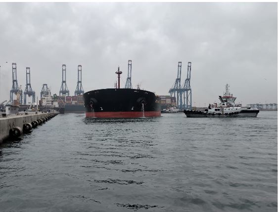 وجرى استقبال السفينة وفقا لأعلى معايير السلامة البحرية من خلال تنسيق كامل بين جميع الإدارات ذات الصلة بما يضمن انتظام عمليات الدخول والرسو بكفاءة ودقة وبأمان تام ثم البدء في أعمال التفريغ باستخدام أحدث المعدات.