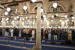 أدى الآلاف صلاتي العشاء والتراويح بالجامع الأزهر في الليلة السابعة عشرة من شهر رمضان الفضيل، وسط أجواءٍ مفعمة بالطمأنينة والخشوع.