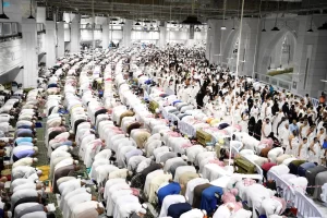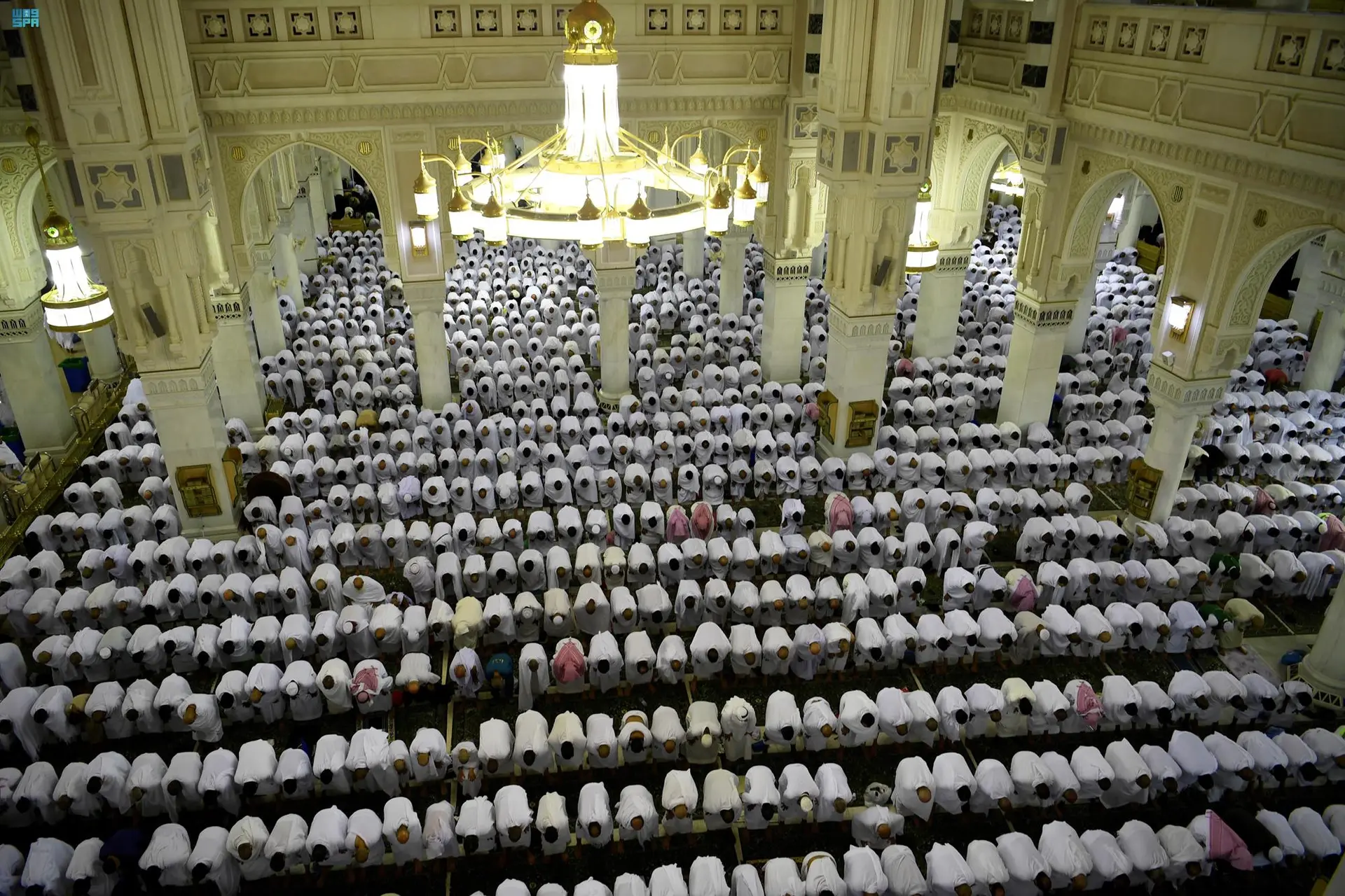 في أجواء روحانية تحفها السكينة و الاطمئنان؛ حيث بدأت وفود الرحمن تتوافد إلى مكة المكرمة منذ الصباح الباكر، أدت جموع غفيرة من المصلين والمعتمرين من داخل المملكة وخارجها، في جنبات وأدوار وأروقة المسجد الحرام وساحاته وسطوحه وبدرومه صلاتي العشاء والتراويح، وحضور ختم القرآن بالمسجد الحرام في هذه الليلة المباركة من الليالي التي يتحرى فيها ليلة القدر.
