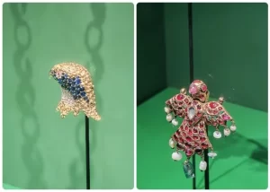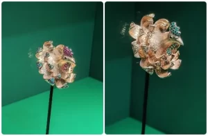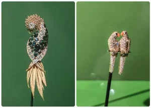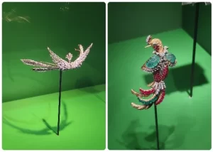 تبدو القطع المعروضة، المصنوعة من الذهب والماس الملوّن والمستوحاة من أشكال الطيور، كأنها على وشك أن تُحلّق خارج واجهات العرض لما تحمله من دقة وإتقان فني يلامس حدود الخيال.