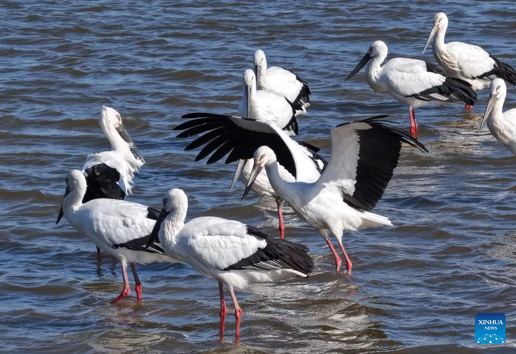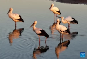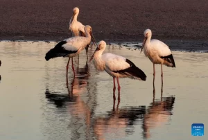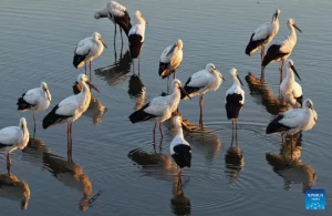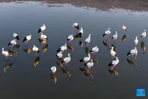 كاميرا طائرة مسيّرة ترصد لحظات استراحة اللقلق الأبيض في بحيرات الصين