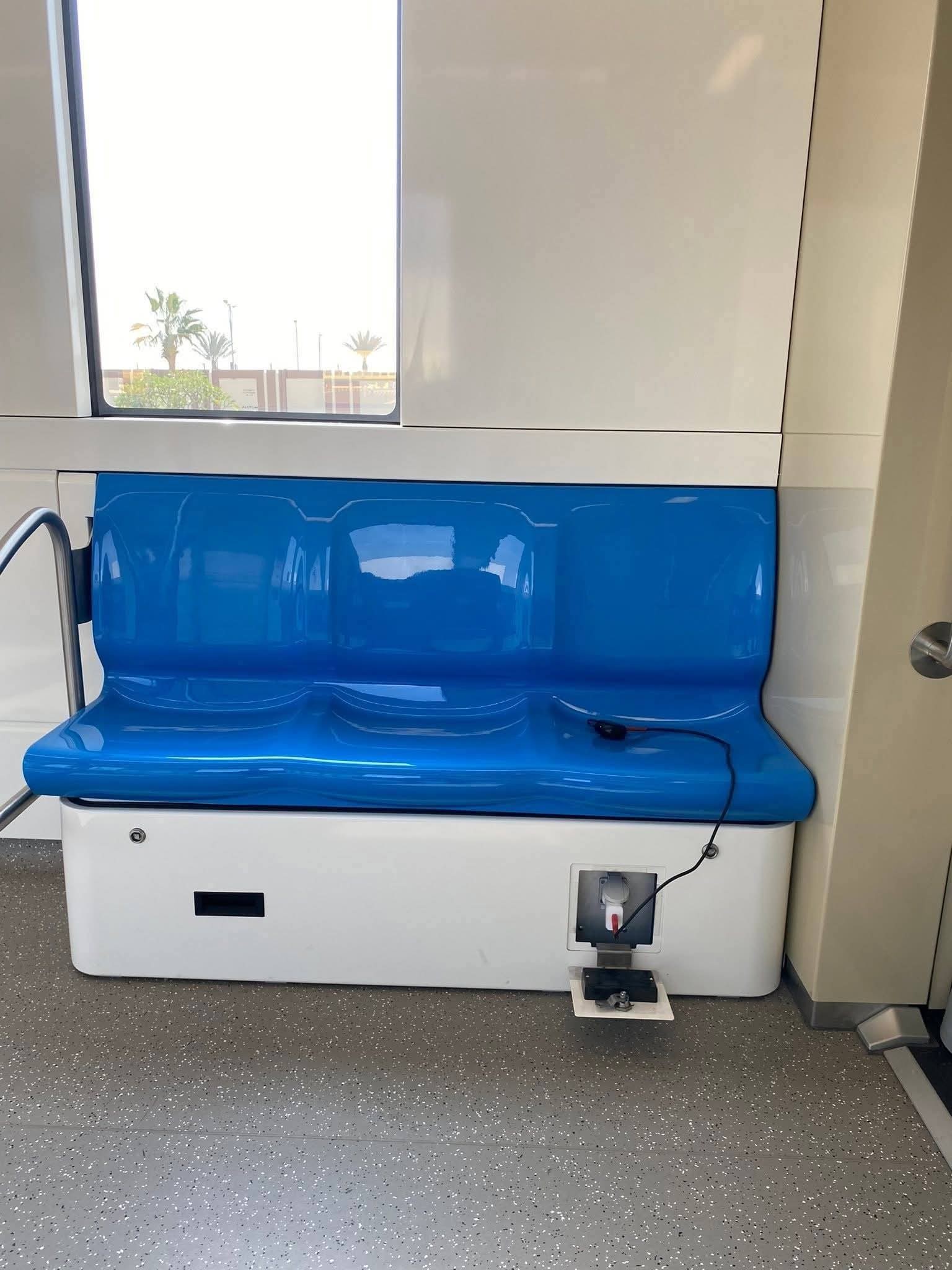 كما زودت عربات المترو الجديدة بكاميرات مراقبة، وأجهزة استشعار متطورة لتعزيز الأمن والسلامة، وتتمتع العربات بعزل كامل ضد الحرارة والبرودة لتوفير الراحة للركاب، وتستوعب كل عربة حوالي 70 راكبًا جلوسًا، بينما تصل الطاقة الاستيعابية للعربة إلى 170 راكبًا في ساعات الذروة بفضل المساحات الداخلية الواسعة والتصميم الحديث.