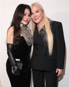 وحرصت هيفاء وهبي على حضور عرض أزياء صديقتها الروسية يولييا يانينا مالكة دار أزياء Yanina Couture، واختارت فستانا أسود اللون مرصعا بالكريستالات عند الصدر.