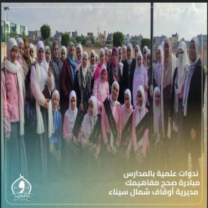 نظّمت مديرية أوقاف شمال سيناء، بالتعاون مع مديرية التربية والتعليم بالمحافظة، صباح اليوم الخميس، ندوة علمية بمدرسة السيدة زينب الثانوية بنات بالعريش بعنوان “موقف الإسلام من التعصب… التعصب الرياضي نموذجًا”، ضمن مبادرة «صحح مفاهيمك» التي أطلقتها وزارة الأوقاف لتصحيح المفاهيم المغلوطة وغرس القيم الإسلامية والأخلاقية بين النشء.