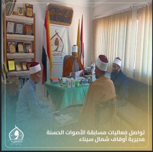 أوقاف شمال سيناء تواصل اختبارات مسابقة “الأصوات الحسنة” للأئمة وخطباء المكافأة