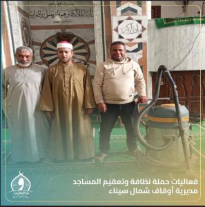 كثّفت إدارة أوقاف غرب العريش بمحافظة شمال سيناء جهودها لتنفيذ حملة موسعة لتنظيف وتطهير وتعقيم المساجد بمختلف مناطق المدينة والقرى التابعة لها.