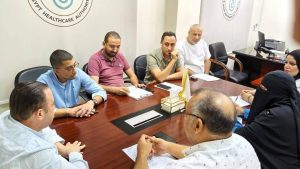 عقد الدكتور أيمن رخا، رئيس إقليم القناة ومدير فرع الهيئة بجنوب سيناء، الاجتماع الدوري لمديري الإدارات الفنية بالفرع بمدينة شرم الشيخ، لبحث مستجدات العمل داخل المنشآت الصحية التابعة للهيئة بالمحافظة.