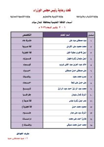 وزارات (التربية والتعليم، التنمية المحلية، الشباب والرياضة).