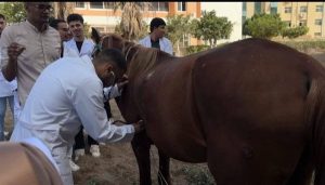 جامعة العريش ترتقي بالطب البيطري: تدريب عملي مبتكر للطلاب على رعاية الخيول والفحص الإكلينيكي