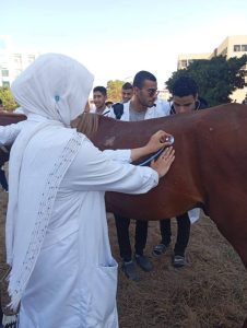 وتضمن التدريب ضمن مقرر “السلوكيات ورعاية الحيوان” تعريف الطلاب بأساسيات التعامل الآمن مع الخيول، طرق الاقتراب والتحكم بها، وإجراء الفحص الإكلينيكي الظاهري، مع التركيز على قراءة العلامات الحيوية التي تعكس صحة وسلامة الحيوان.