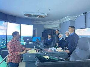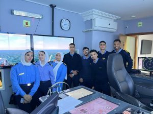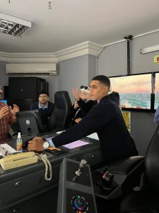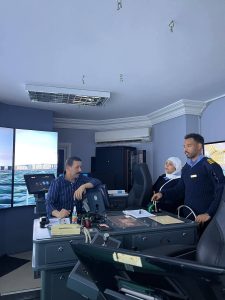 وشمل اليوم التدريبي برنامجًا مكثفًا من الزيارات الميدانية، أبرزها التدريب على المحاكي البحري بشركة بان آراب للملاحة البحرية، حيث تعرّف الطلاب على أنظمة الملاحة الحديثة وطرق إدارة المواقف البحرية المختلفة، مما أتاح لهم تجربة واقعية تحاكي بيئة العمل الفعلية في البحر.