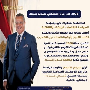 تؤكد المؤشرات أن ما تحقق في 2025 ليس إلا حجر زاوية لمستقبل أكثر إشراقاً، حيث تتحول جنوب سيناء من مجرد مقصد سياحي إلى “مركز إقليمي متكامل” للتنمية المستدامة، يعتمد على الابتكار، ويحتفظ بهويته التاريخية، ويفتح ذراعيه للعالم كأرض للأمان والفرص الواعدة.