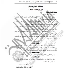 دخلت محافظة شمال سيناء مرحلة التنفيذ الفعلي لمنظومة تنظيم العلاقة بين المالك والمستأجر، حيث نشرت الجريدة الرسمية (الوقائع المصرية) قرار المحافظ رقم 267 لسنة 2025، والذي يضع خارطة طريق واضحة لتقسيم مناطق الإيجار القديم الخاضعة لأحكام القانون الجديد رقم 164 لسنة 2025.