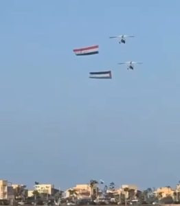 علم فلسطين يرفرف بجوار العلم المصري في سماء شرم الشيخ