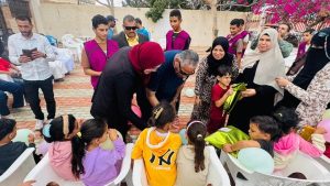 فرحة وبهجة بشمال سيناء.. الشباب والرياضة توزع الهدايا على الأطفال الفلسطينيين