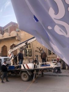 قام قسم الإشغالات بمجلس مدينة العريش وبسيارة قسم الإنارة بفك اللوحات الإعلانية من الشارع الرئيسي بمدينة العريش والتنبيه بعدم وضع لوحات إعلانية الا بعد الرجوع لمجلس المدينة .