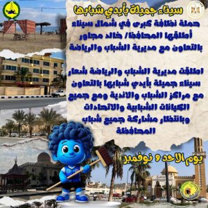 مبادرة “سيناء جميلة بشبابها”.. الشباب والرياضة ينظفون ويجملون شمال سيناء